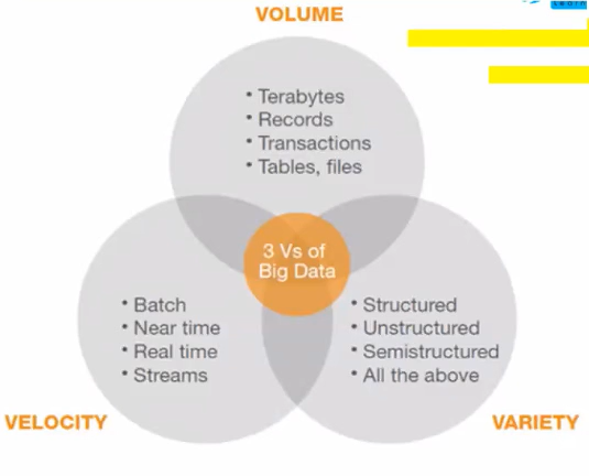When I learned in university, big data is a field that treats ways to analyze, systematically extract information from, or otherwise deal with data sets that are too large or complex to be dealt with by traditional data-processing application software. It is characterized by the three Vs: Volume, Velocity, and Variety.